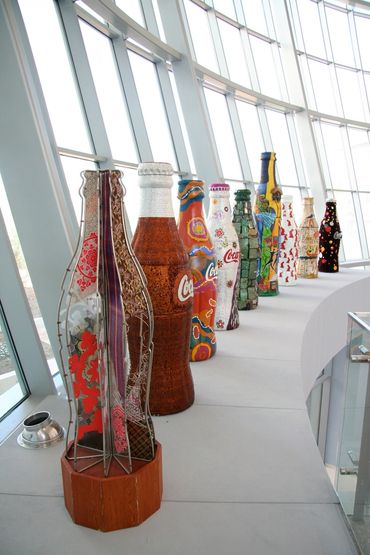 The facility is planned with a large, open gallery space in a fluid and open design to allow for regular exhibit updates. The retail area includes bamboo and cork flooring. The exterior includes a 90 foot tower with a 30 foot illumination of a coke bottle shape that displays at night.
